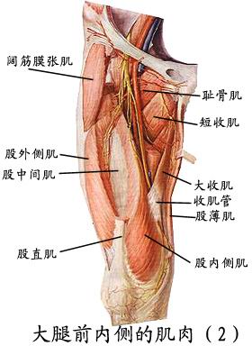 (2)内侧群:为5块内收肌,即长收肌、短收肌、大收肌、耻骨肌、股薄肌。均可使髋关节内收。