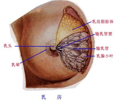乳房主要有皮肤、乳腺、致密结缔组织、脂肪构成。