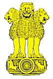 图案来源于孔雀王朝阿育王石柱顶端的石刻。圆形台基上站立着四只金色的狮子,象征信心、勇气和力量。台基四周有四个守卫四方的守兽:东方是象,南方是马,西方是牛,北方是狮。守兽之间雕有法轮。图案下面有句用梵文书写的、出自古代印度圣书的格言“唯有真理得胜”。