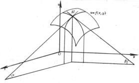 ¶þÔªº¯Êýu=f(x,y)±íʾһÇúÃæ,ͨ¹ýÇúÃæÉÏÒ»µãM(x,y,u)×÷һƽÐÐÓÚOxuÆ½ÃæµÄÆ½Ãæ,ÓëÇúÃæÓÐÒ»Ìõ½»Ïß,