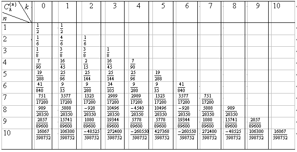 在等距内插求积公式中,以辛卜生公式和龙贝公式为好,计算简单 ,便于在电子计算机上实现(都有标准程序),精确度也相当高.特别龙贝公式是采用区间逐次分半的方法,前一次分割得到的函数值在区间分半后仍可利用,具有计算有规律,不需存储柯特斯系数和节点等优点.
