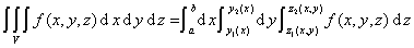 确定,其中,,,都是连续函数,且函数f(x,y,z)V上是连续的,则函数f(x,y,z)在有界区域V上的三重积分