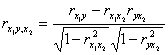 如果只要表示y与其中某一个变量(x1x2)的相关关系,那末必须除去另一个变量的影响之后再计算它们的相关系数,这称为偏相关系数。x1,y在除去x2的影响之后的相关系数称为x1,yx2的偏相关系数,记作,它可用普通的相关系数表示: