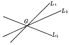 对l 的一个确定值,Ll 表示一条通过二直线(L1和L2)的交点G的直线,当l 取一切值时,Ll 所表示的通过G的直线的全体称为直线束,G称为直线束的顶点(或中心). 设L3为A3x + B3y + C3 = 0,则三条直线L1, L2, L3共点的条件为行列式 如果二直线方程以法线式给定,则|l |为直线Ll 上任一点到二给定直线之间的距离之比,对应与 l = 1和 l = -1的直线为给定二直线夹角的平分线 |