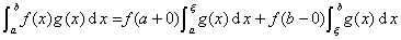 (3) 若函数f(x),g(x)在区间[a,b]上有界且可积,而f(x)在[a,b]上是单调的,则在区间[a,b]内至少存在一个数ξ(a<ξ<b),使得