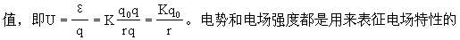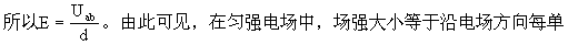 物理量,但电势和电场作功相联系,场强和电场力相联系,所以前者是标量,后者是矢量。在计算场的迭加问题时,电势取标量和,场强用矢量和。在匀强电场中,电荷q沿电场方向移动距离d,电场力所作的功W=qEd,而电势能改变量为qUab,a、b为电荷q的始点和终点。根据功能关系,二者应该相等,即qEd=qUab,