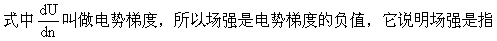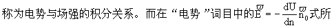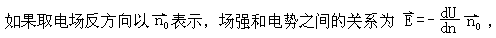 表示的为电势与场强的微分关系。此式说明,(1)一点的场强与过该点的等位面垂直,而且指向电位减小的方向;(2)某点场强的大小等于该点电势沿等势面法向的变化率(沿法向的方向导数)。