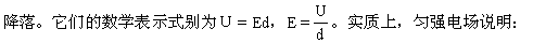 位距离的电势差(电压),方向指向电势降落的方向。对于非均匀场,