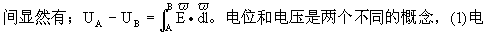 位是点函数,电压不是点函数。应该养成“对一点谈电势,对两点谈电压”的习惯;(2)在许多情况下不但要关心两点电压的绝对值,而且要关心这两点的电势谁高谁低。一般以UAB表示UA-UB,(称为“A对B的电压”),于是从UAB的正负便表示了A、B电位的高低;(3)静电场力所作的功与路径无关,所以当电场确定时,两点的电压就完全确定,但电位却与参考点的位置有关。因此说到某点的电势时,一定要明确指出参考点。只要在同一问题中选定一个参考点,电势就有确定的