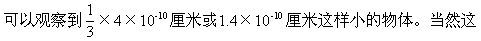 是理论上的结果,在实际上由于仪器等等原因,不可能达到这样理想的地步。但无论如何,电子显微镜已可以放大五万倍以上;而有些精良到可将物体放大十万倍。电子显微镜中有一个电子枪,电子在枪集束射出,正像光学显微镜中利用光学透镜的成像作用得到显微的放大像一样,在电子显微镜中用磁透镜,使电子束会聚成像。我们把一片待观察的物体,例如一片很薄的晶体,放在电子显微镜中,电子束会就射向这片物体上,在一块荧光幕上就会得到一个放大的影像。如果在电子显微镜中用感光的底片代替荧幕的话就可以得到一张微观世界的珍贵图片。而一些特别好的电子显微镜,甚至可以观察到一些巨分子的结构!这些图片在科学研究上的价值十分重大。当然,在电子显微镜中不会这样简单,它要涉及电子射线通过物体产生不同的散射而造成明暗不同的影响。最近,有些电子显微镜是利用电子束的反射来观察较厚的物体例如病菌、病毒及其他极微小物体的巨分子组织。而最新的显微镜用的却不是电子显微镜,而是离子显微镜借以达到更短的波长,米勒曾经利用氦的离子显微镜成功地拍摄到金属表面的单独分子运动!这种离子显微镜可以分辨原子之间相隔百万分之二十七厘米的空隙,它是目前显微镜中最好的一种。