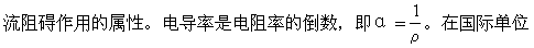 【电阻率】表征物质导电性能的物理量。也称“体积电阻率”。电阻率越小导电本领越强。用某种材料制成的长1厘米、横截面积为1平方厘米的导体电阻,在数值上等于这种材料的电阻率。也有取长1米、截面积1平方毫米的导电体在一定温度下的电阻定义电阻率的。此两种定义法定义的电阻率在数值上相差4个数量级。如第一种定义,铜在20℃时的电阻率为1.7×10-6欧姆·厘米。而第二种定义电阻率为0.017欧姆·毫米2/米。电阻率的倒数称为电导率。电阻率ρ不仅和导体的材料有关,还和导体的温度有关。在温度变化不大的范围内,几乎所有金属的电阻率随温度作线性变化,即ρ=ρ0(1+αt)。式中t是摄氏温度,ρ0是0℃时的电阻率,α是电阻率温度系数。由于电阻率随温度的改变而改变,所以对某些电器的电阻,必须说明它们所处的物理状态。如220伏、100瓦电灯的灯丝电阻,通电时是484欧姆,未通电时是40欧姆。另外要注意的是:电阻率和电阻是两个不同的概念。电阻率是反映物质对电流阻碍作用的属性,电阻是反映物体对电