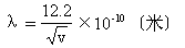 如果V=15O伏特的电位差,则德布罗意波的波长λ=10-8米。如果电位差再大则λ也相应变短。