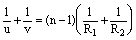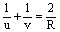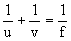 其中u是物距——代表物到透镜(或面镜)的距离;v是像距——代表像到透镜(或面镜)的距离;f为透镜的焦距。K是像的横向放大率。此二关系式对三种光具组都适用。下表表明在三种透镜中应用情况。