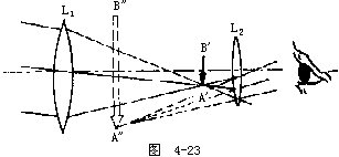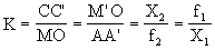 【牛顿公式】 设X1表示物体与第一焦点的距离,而X2表示光像与第二焦点的距离,由图4-14可以看出,△CC′F2~△MOF2和△M′OF1~△AA′F1放大率