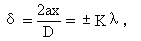 由此可知某明(暗)条纹与中点O的距离与光之波长及光源到屏幕的距离成正比,与二针孔间的距离成反比。依此公式可计算某光波波长的近似值。