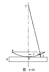 现在我们求与O相距r处的空气层厚度e,由图中的直角三角形得