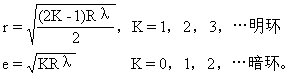 上式说明e与r2成正比,所以离开中心愈远,光程差增加愈快,所