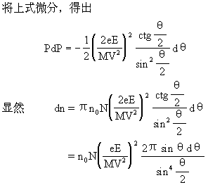 此关系式是在每一个a粒子只偏转一次的条件下才正确,而这个条件在金属箔足够薄时是能够实现的。环的面积dS近似地等于2πPdP。所以有