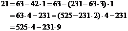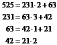 Example 1 set a = 525, b = 231, according to the formula (1) , the following formulas and formulas can be listed :