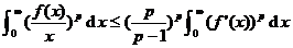 8° Hardy's Inequality Let f ( x ) be differentiable and rising on [ 0 , ∞ ), f '( x ) is continuous, f (0)=0 , p > 1, then